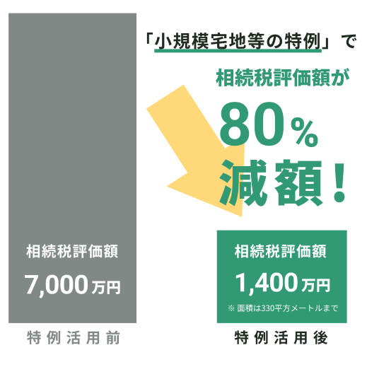 「小規模宅地等の特例」を活用することによって、品川家の場合は7,000万円の評価額を80%減の1,400万円まで減らすことができます。