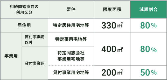 被相続人が使用していた宅地に適用される特例で、居住用なら最大80%、事業用なら最大50%の評価減が可能です。家族が住み続ける場合などに有効で、相続税負担の軽減が図れます。
